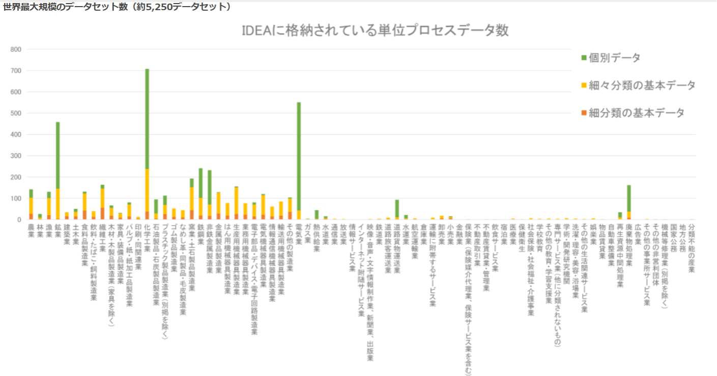・約5,000以上のデータセット数を保持しているため、非常に細かい解像度でLCA実施者の負担を大幅に軽減